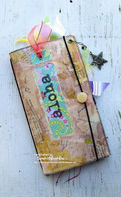 not qualify for winning a prize if entered. This is a recycled window envelope turned into a junk journal by decoupaging old book pages and a napkin on it.)
