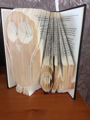(using an unwanted Harry Potter book which she has folded to look like an owl)